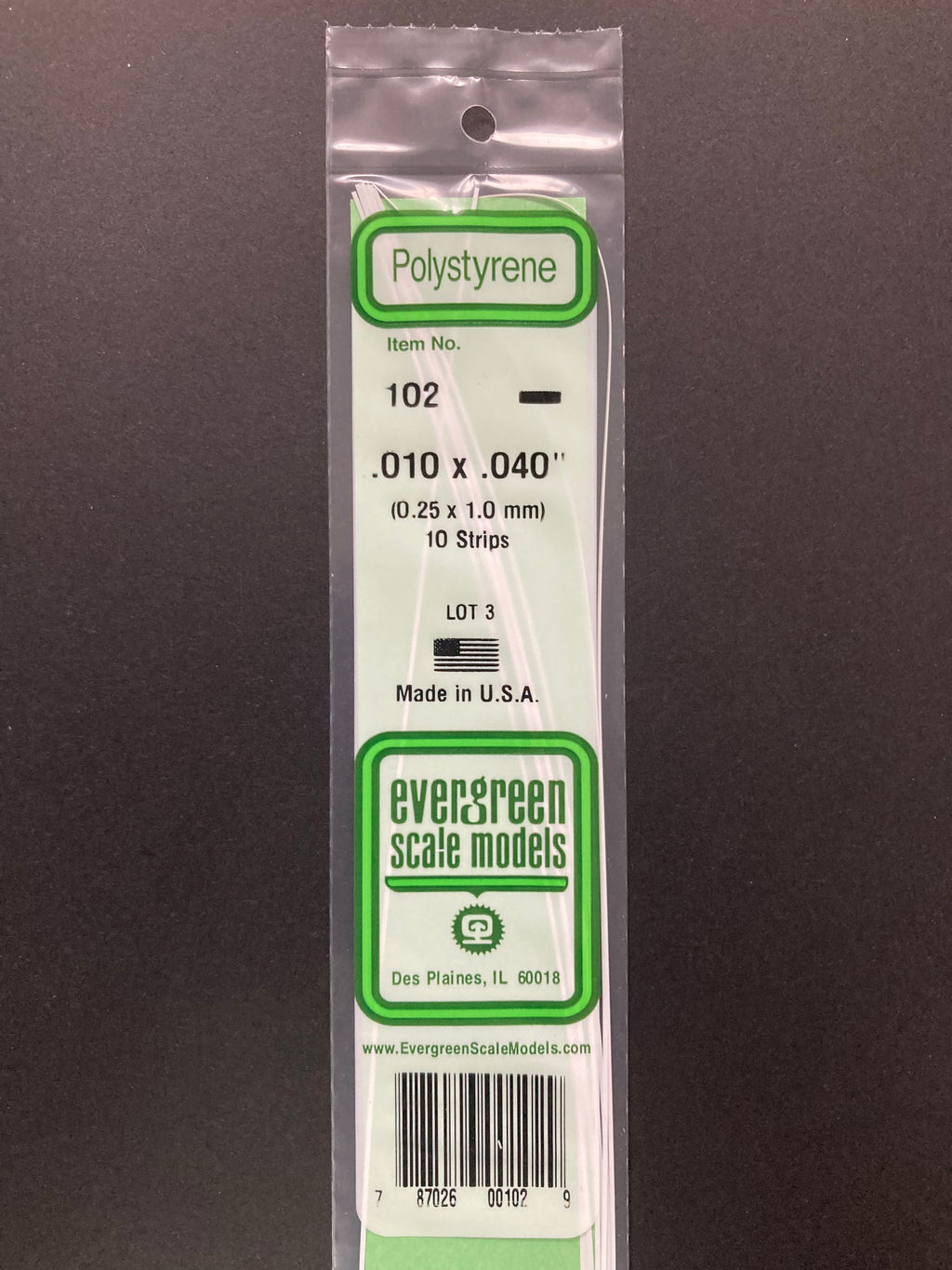 0.25 x 1.0 mm Opaque White Dimensional Polystyrene Strips (10 Strips) Item No: 102