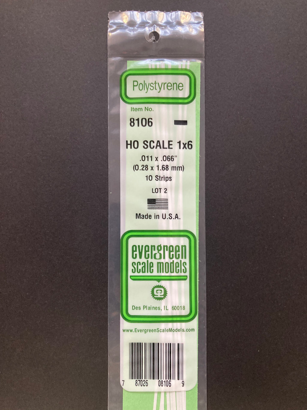 0.28 x 1.68 mm Opaque White HO Scale Polystyrene Strips (10 Strips) Item No: 8106