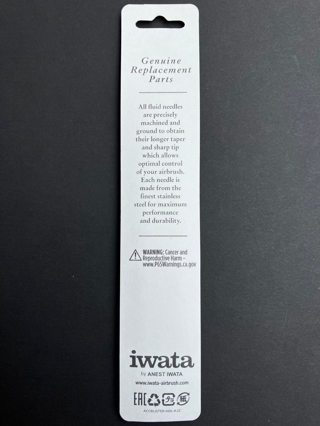 Iwata Needles are made from stainless spring-steel increasing durability and have an ultra-smooth taper which creates optimal paint flow around the needle.