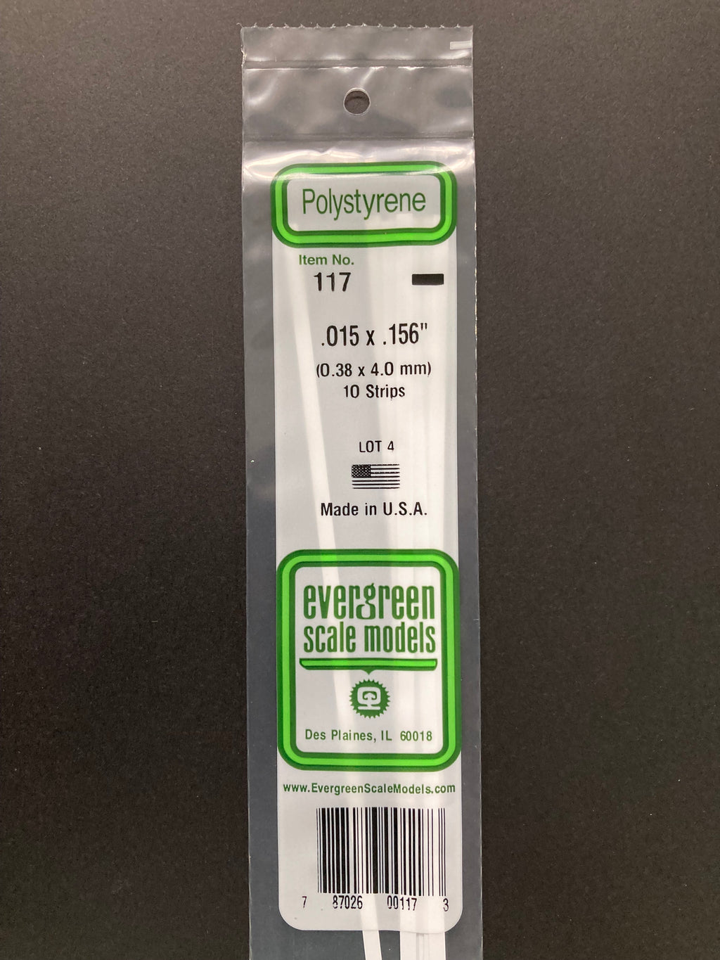 0.38 x 4.0 mm Opaque White Dimensional Polystyrene Strips (10 Strips) Item No: 117
