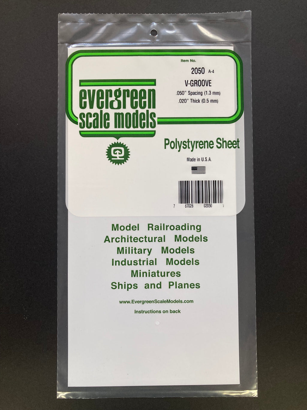 Opaque White Thick Polystyrene V-Groove Siding Sheets has a .020" (0.50 mm) sheet thickness and is available with the following groove spacing: