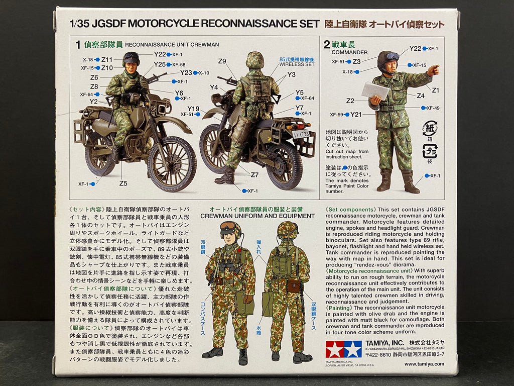 This set includes a JGSDF reconnaissance unit motorcycle, as well as one figure each of a reconnaissance unit member and a tank crew member.