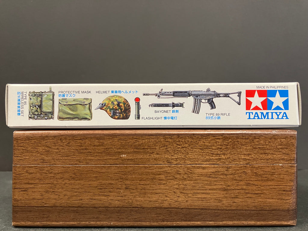 The reconnaissance unit member is posed riding with binoculars in hand, and his equipment, including the Type 89 rifle, bayonet, flashlight, and Type 85 portable radio, has also been given a sharp finish.