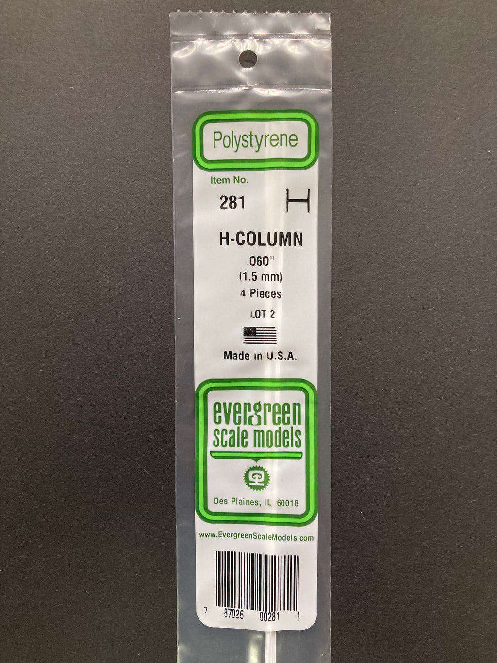 1.5 mm Opaque White Polystyrene H Column (4 Pieces) Item No: 281