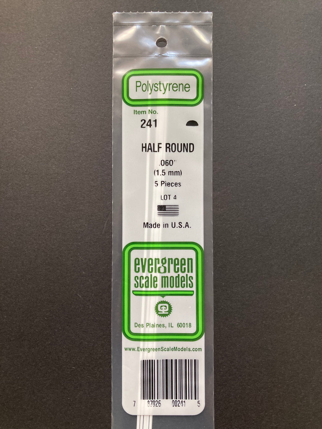1.5 mm Opaque White Polystyrene Half Round Strips (5 Pieces) Item No: 241