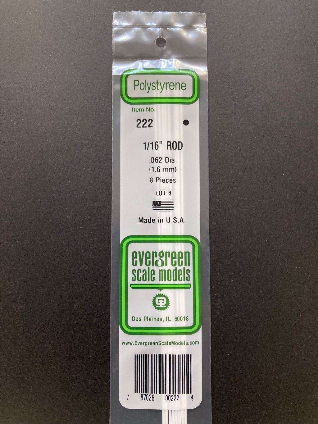 1.6 mm O.D. Opaque White Polystyrene Rods (8 Pieces) Item No: 222