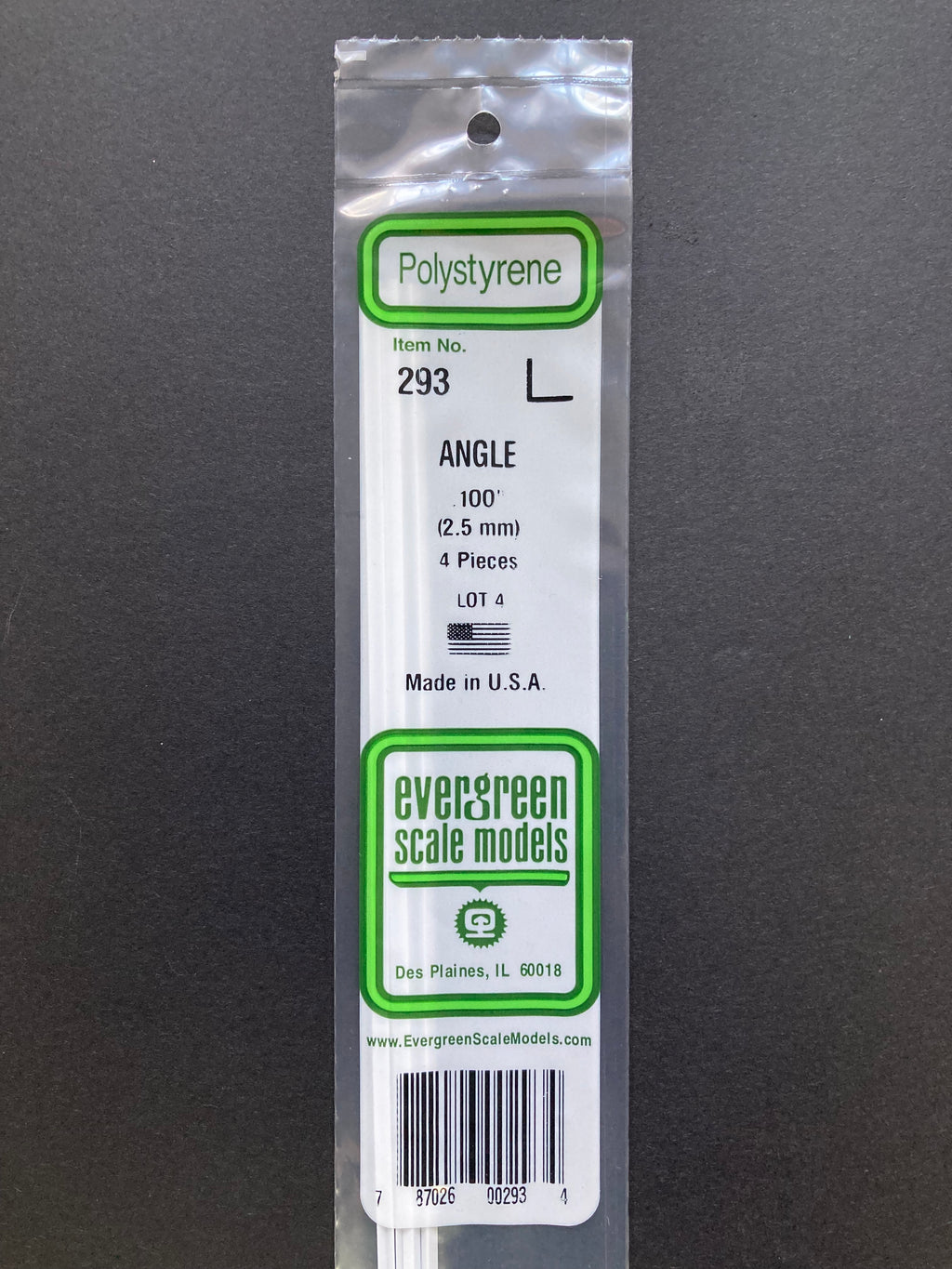 2.5 mm Opaque White Polystyrene Angle (4 Pieces) Item No: 293
