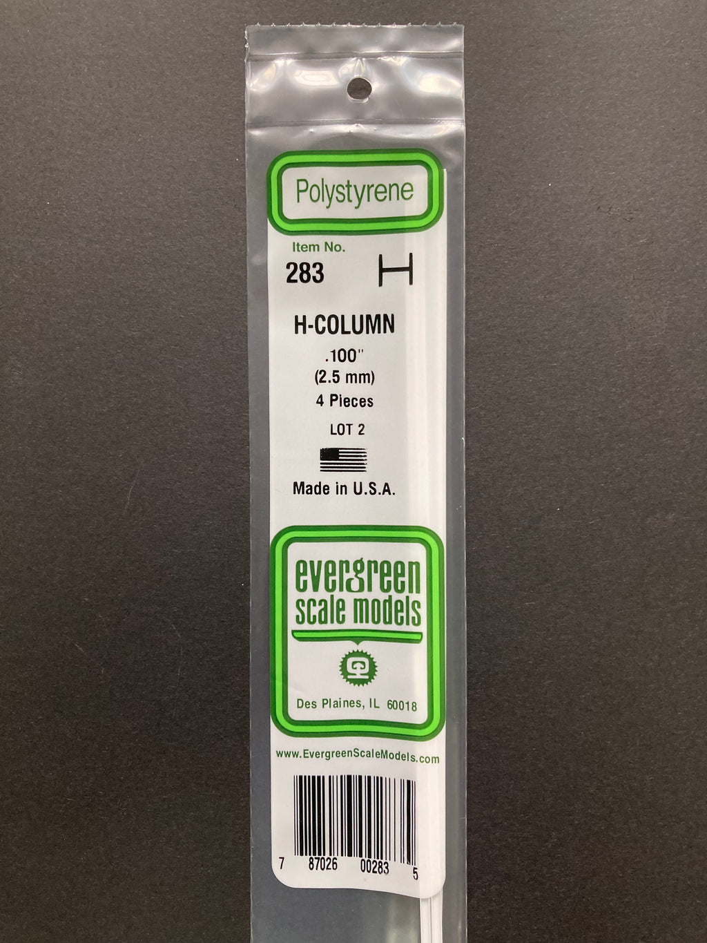 2.5 mm Opaque White Polystyrene H Column (4 Pieces) Item No: 283