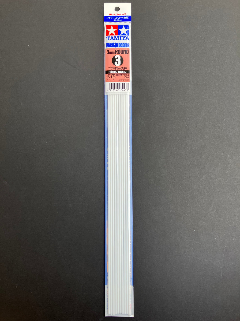 3 mm Round Plastic Beams 40 cm 10 pcs. [聚苯乙烯樹脂塑膠丸/圓形棒 - 10 件裝] No. 70133