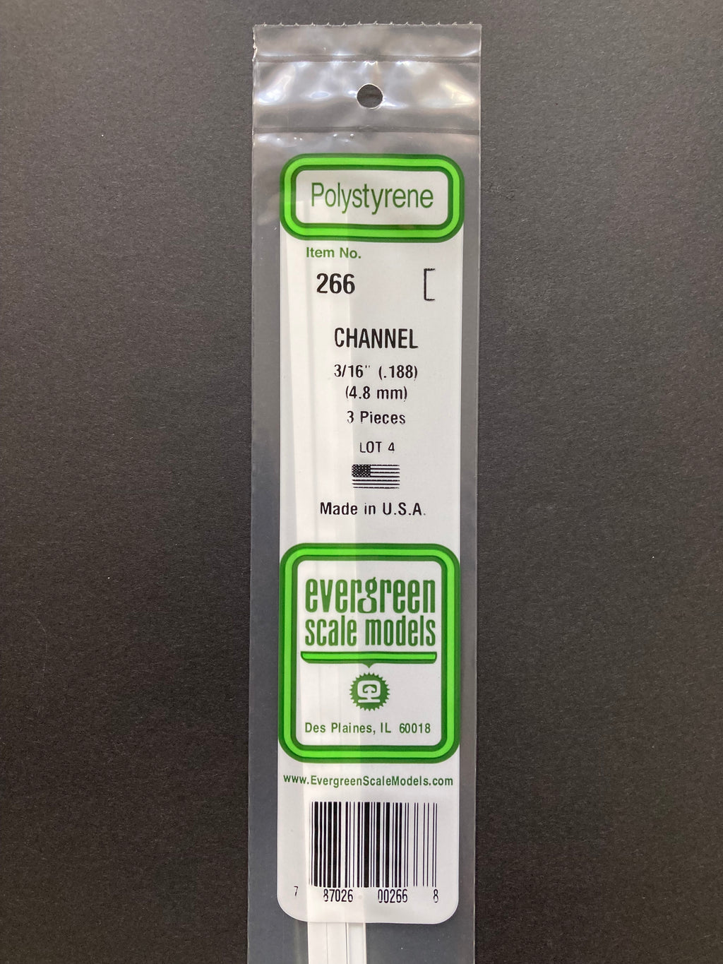 4.8 mm Opaque White Polystyrene Channel (3 Pieces) Item No: 266