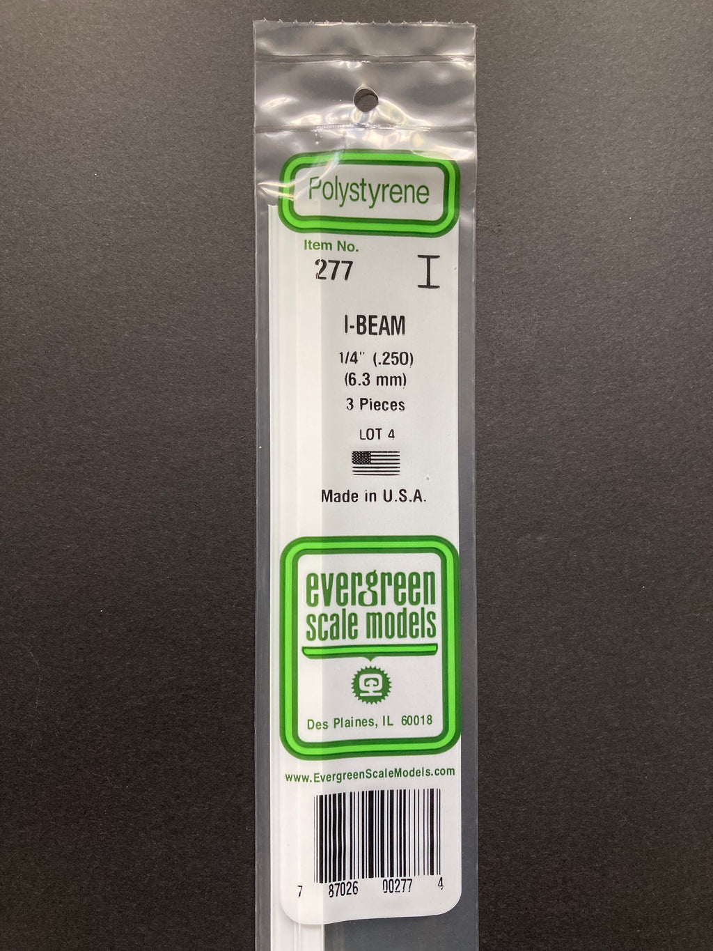6.3 mm Opaque White Polystyrene I Beam (3 Pieces) Item No: 277