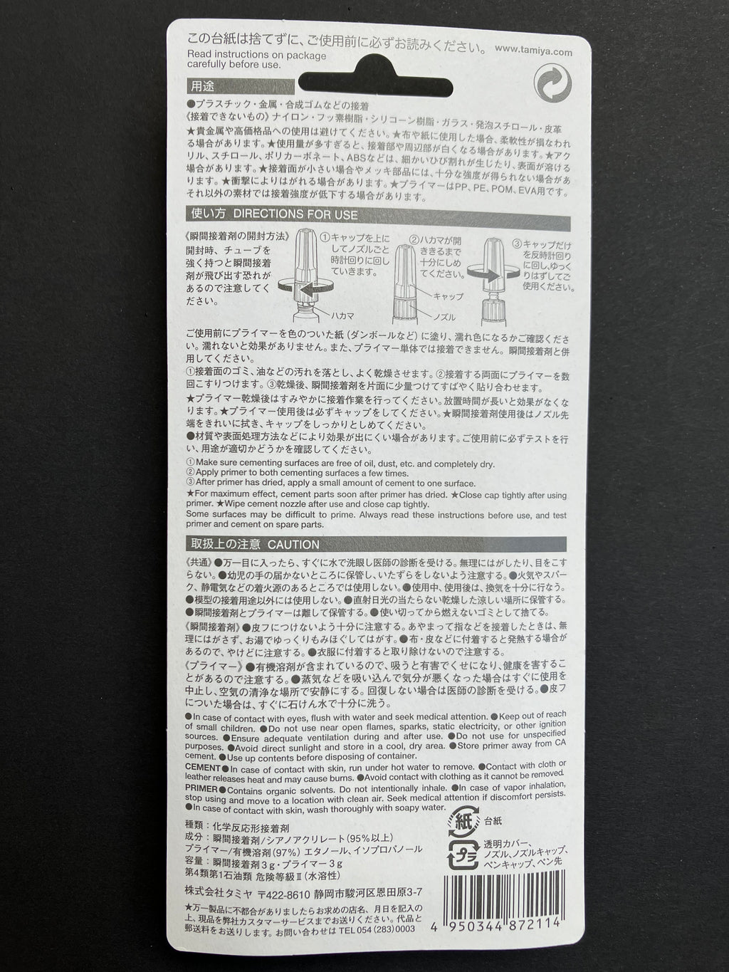 *A set of 3 gram instant adhesive (high strength type) and 3 gram primer.