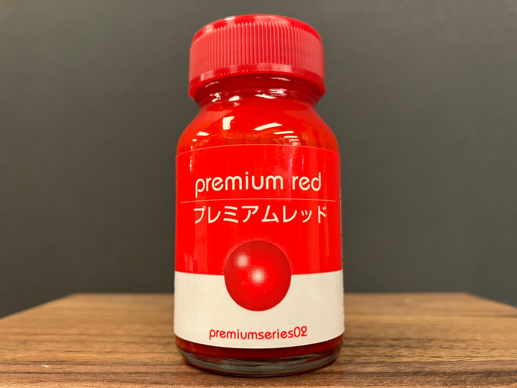 Premium Red is a clear pigment paint. It's a beautiful and delicate red that's so vibrant you'll have trouble deciding what to paint it on. Because it's a clear paint, it will create a vibrant red if you paint a white base, or a metallic red if you paint a silver base. Because it's a pigment paint, it won't bleed even if you apply a decal and then a clear coat over it. Because it uses precious pigments, it is produced in limited quantities once every few years. We highly recommend you give it a try.