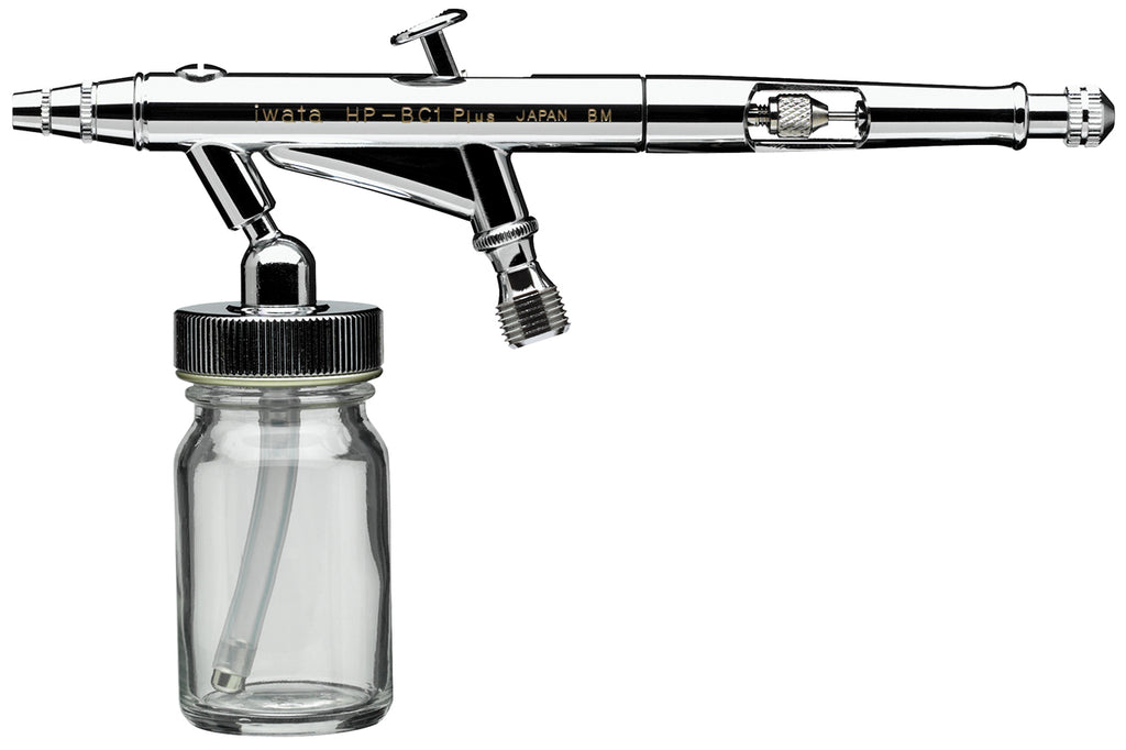 Offering total control for fine detail spraying, Iwata's High Performance Plus Series airbrushes are designed around the legendary Iwata HP Series which established the Iwata name in the creative community over 50 years ago. Iwata High Performance HP-BC1 Plus has a 0.68 oz / 20 ml glass jar that is ideal when using a higher volume of spray medium. One of the benefits to siphon feed is the ability to use multiple bottles that can hold larger volumes of spray material, as compared to gravity-feed airbrushes. Quick color changes can be made using multiple bottles and pre-filling them with your favorite colors. (extra bottles come in a variety of sizes and types and are sold separately)