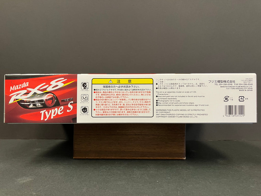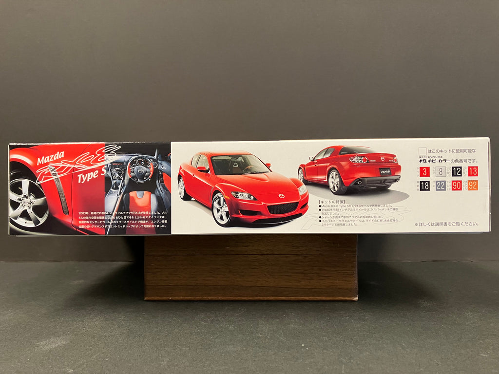 The Mazda RX-8, which debuted with a style befitting the new era, has been reproduced in 1/24 scale.