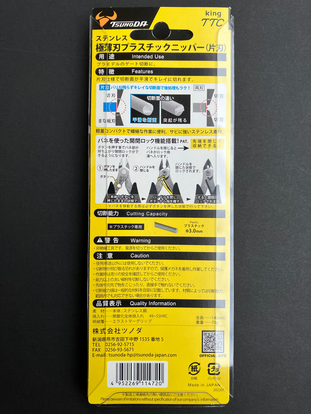 - Equipped with an open/close lock mechanism that uses a spring. It can be safely stored with the cutting edge closed! (PAT.)