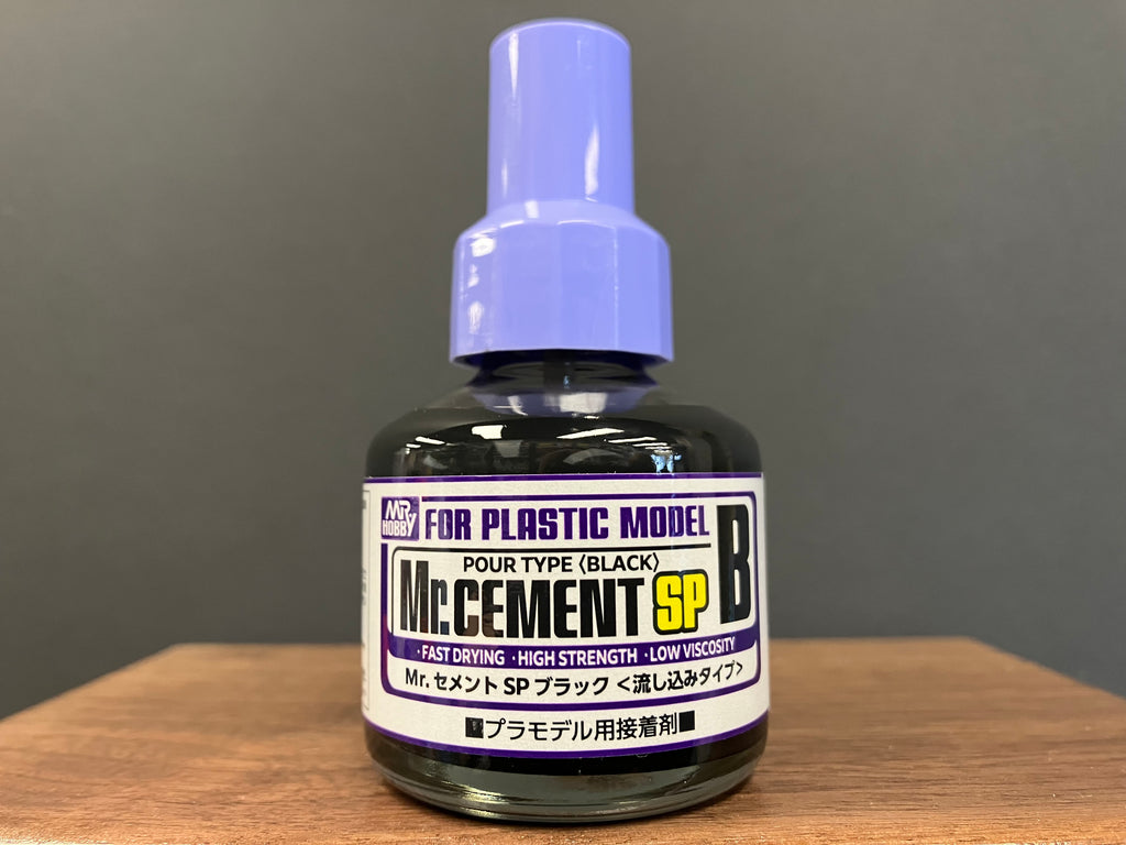 Mr. Cement SP (Super Power), a fast-drying, strong pour type adhesive for polystyrene (PS/polystyrene) resin, is now available in black!