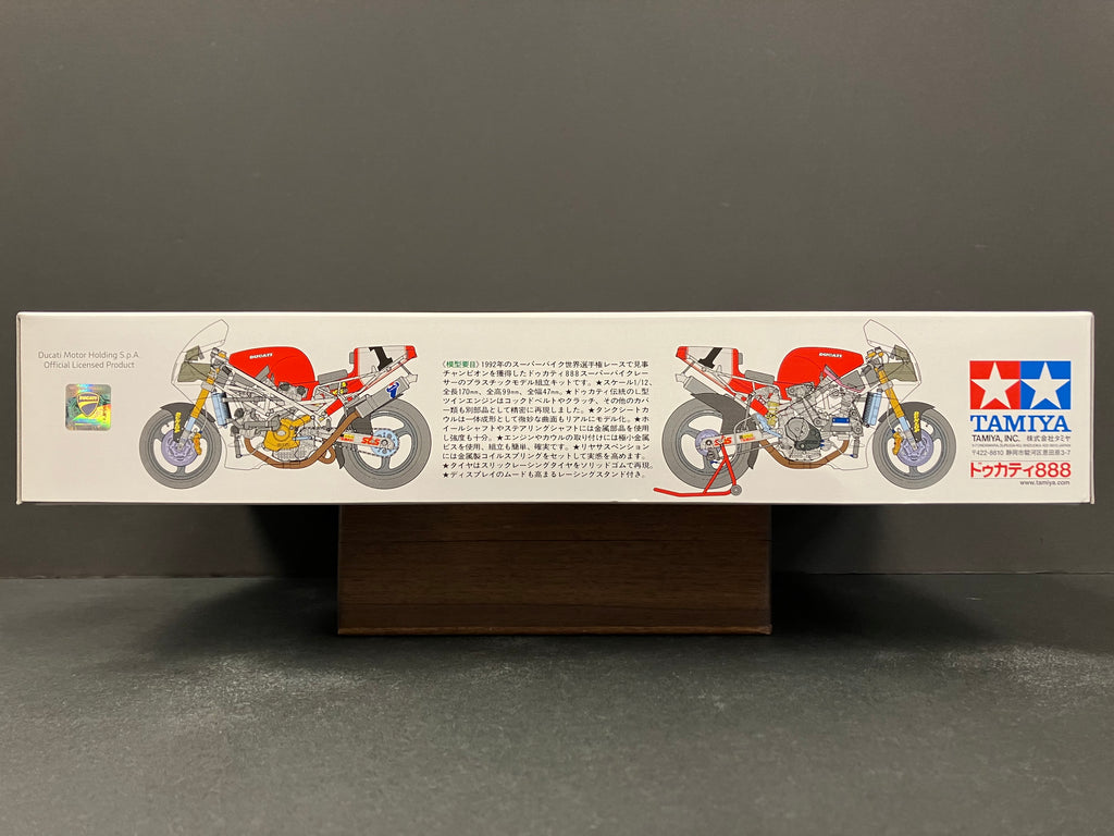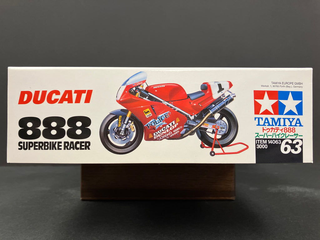 This plastic model assembly kit recreates the Ducati 888, the champion of the Superbike World Championship, which was crowned champion three years in a row from 1990.