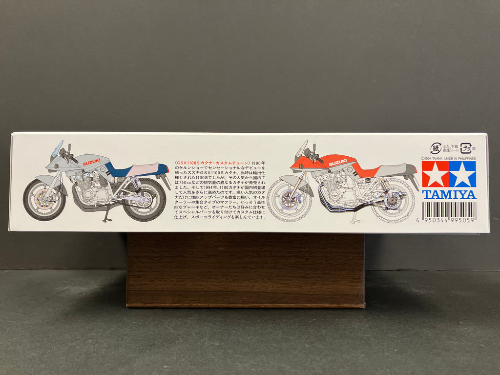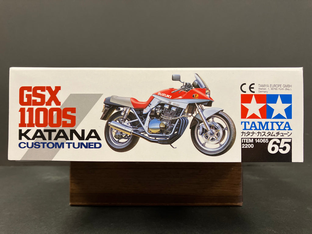 This is a plastic model kit of the Suzuki GSX1100S Katana, which made its sensational debut at the Cologne Motor Show in 1980, featuring a custom configuration with special parts.