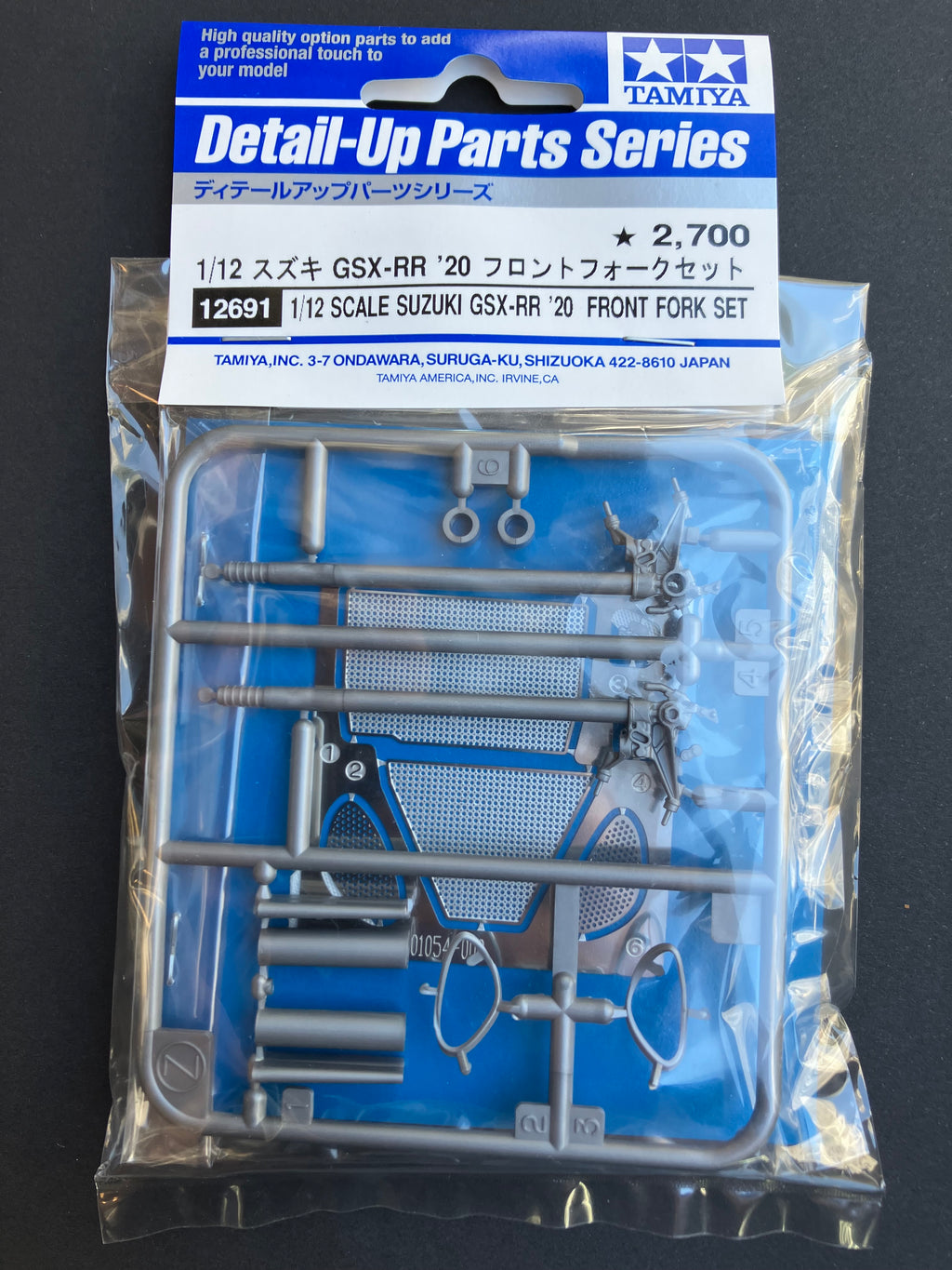 This is a set of detailed upgrade parts for the 1/12 scale Suzuki GSX-RR model kit, designed to significantly enhance its appearance and overall quality.
