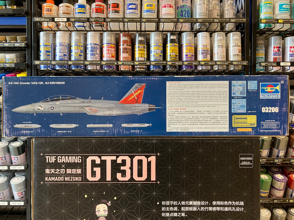 The added electronics include AN/ALQ-218 wideband receivers on the wingtips, and ALQ-99 high and low-band tactical jamming pods.