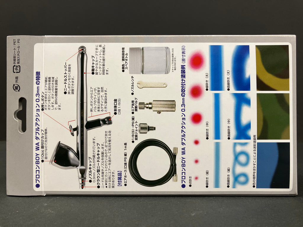 This standard 0.3 mm diameter airbrush is easy to use and can be used for everything from thick, full-body paint jobs to camouflage painting.