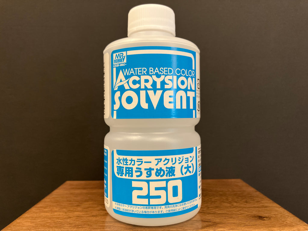 This is a thinner exclusively for Acrysion series paint, production has now been discontinued from GSI Creos Mr. Hobby.